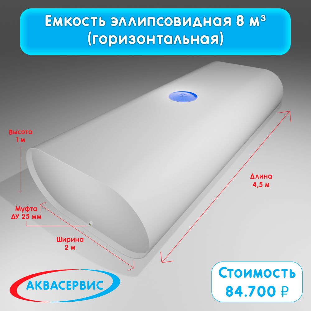 Емкость эллипсовидной формы 8 м³ (4500х2000х1000)