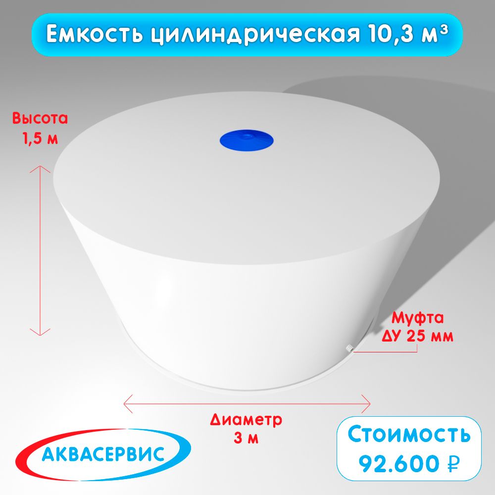 Емкость цилиндрической формы 10,3 м³ (3000х1500)