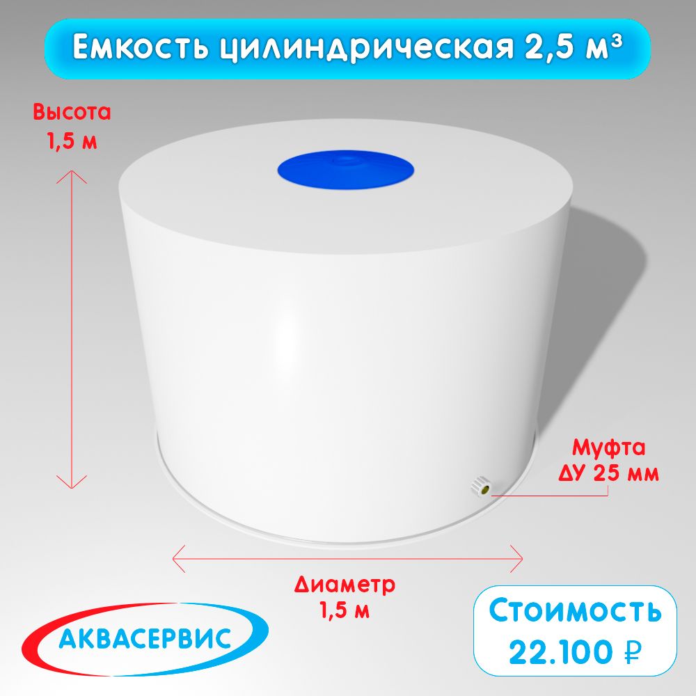 Емкость цилиндрической формы 2,5 м³ (1500х1500)
