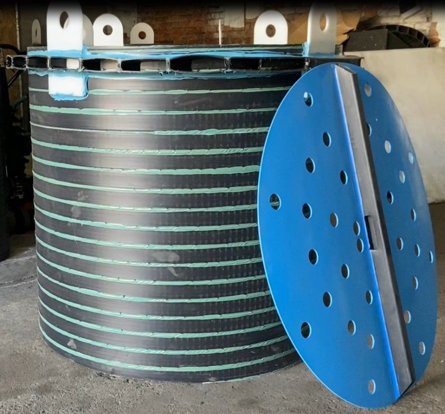 Корпуса фильтр-патронов компании Аквасервис производятся методом непрерывной шнековой экструзии полого прямоугольного профиля из полиэтилена с последующей навивкой и экструзионной сваркой его на цилиндрической оправке.