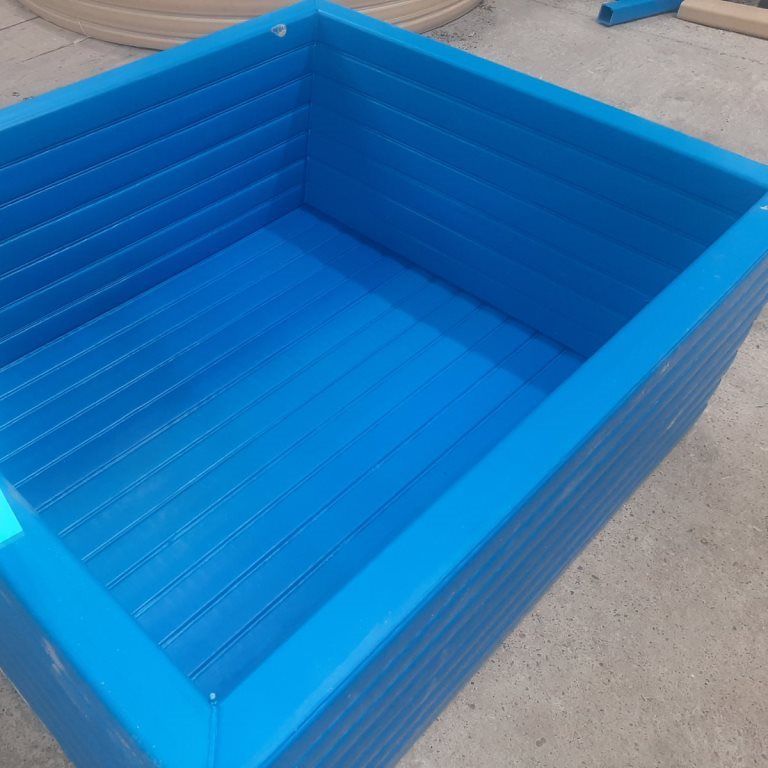 Корпус емкостей изготавливается из прямоугольных полипропиленовых или полиэтиленовых профилей, размер и толщина стенок которых зависят от объема емкости, конструктивных особенностей и вида жидкости.